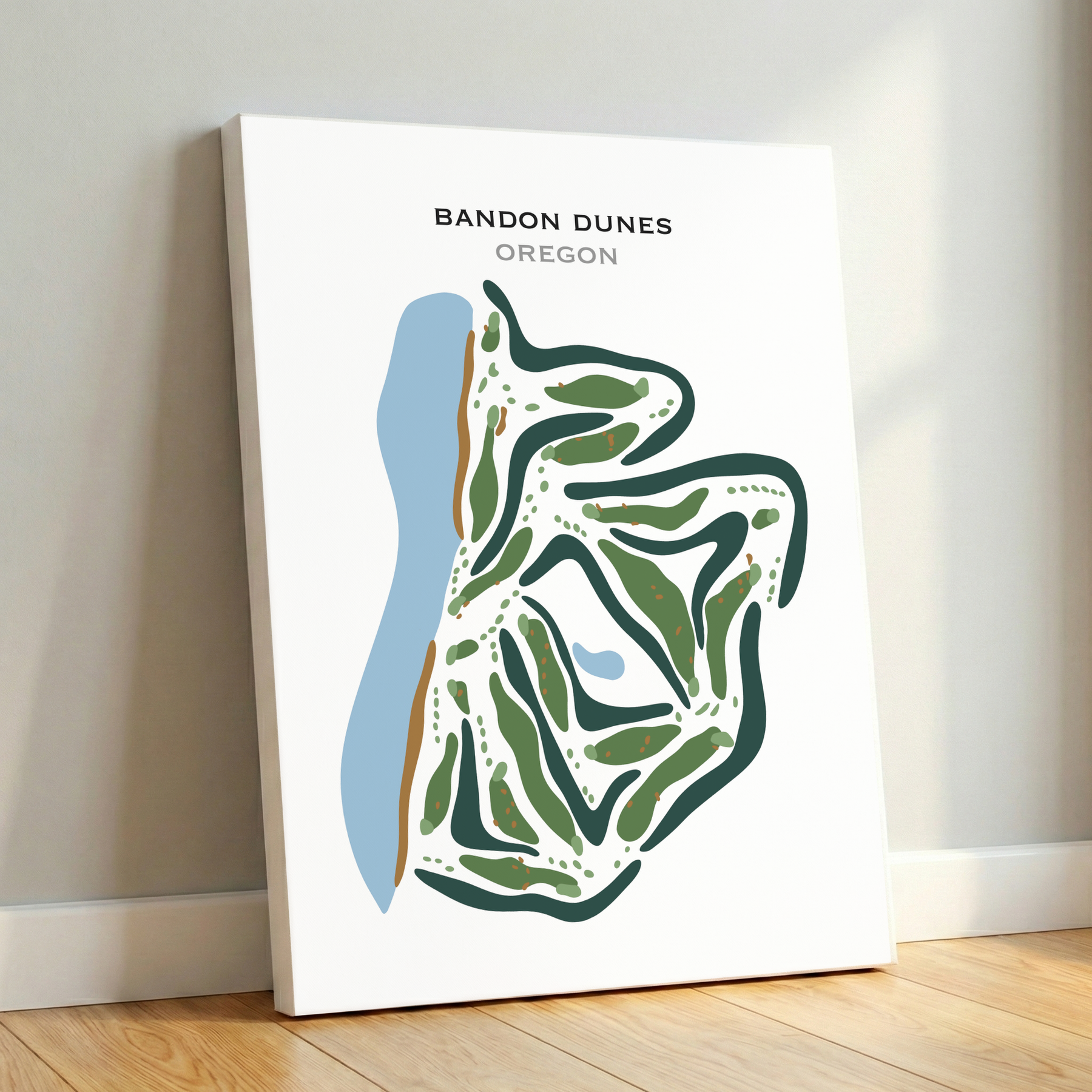 nestled along the scenic southern coast of Oregon. These captivating watercolor-style golf course maps, featuring Bandon Dunes as their centerpiece, are collectible art pieces and perfect for any avid golfer or golf fan. These maps serve as cherished keepsakes and personal mementos that you can proudly showcase on the walls of your home or office.